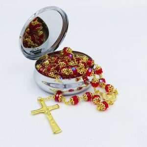 Różaniec z przepięknych koralików stanowi praktyczny upominek religijny dla bliskiej osoby.