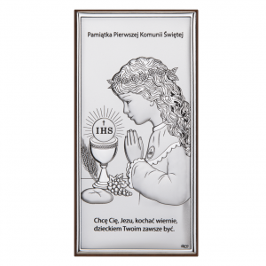 Obrazek srebrny – Pamiątka Pierwszej Komunii Świętej dla dziewczynki