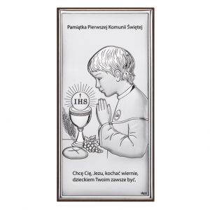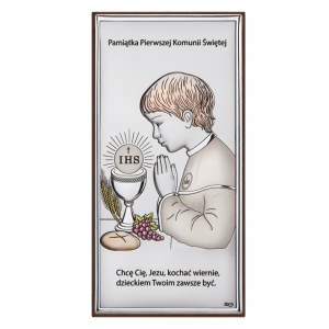 Obrazek srebrny – Pamiątka Pierwszej Komunii Świętej dla chłopca