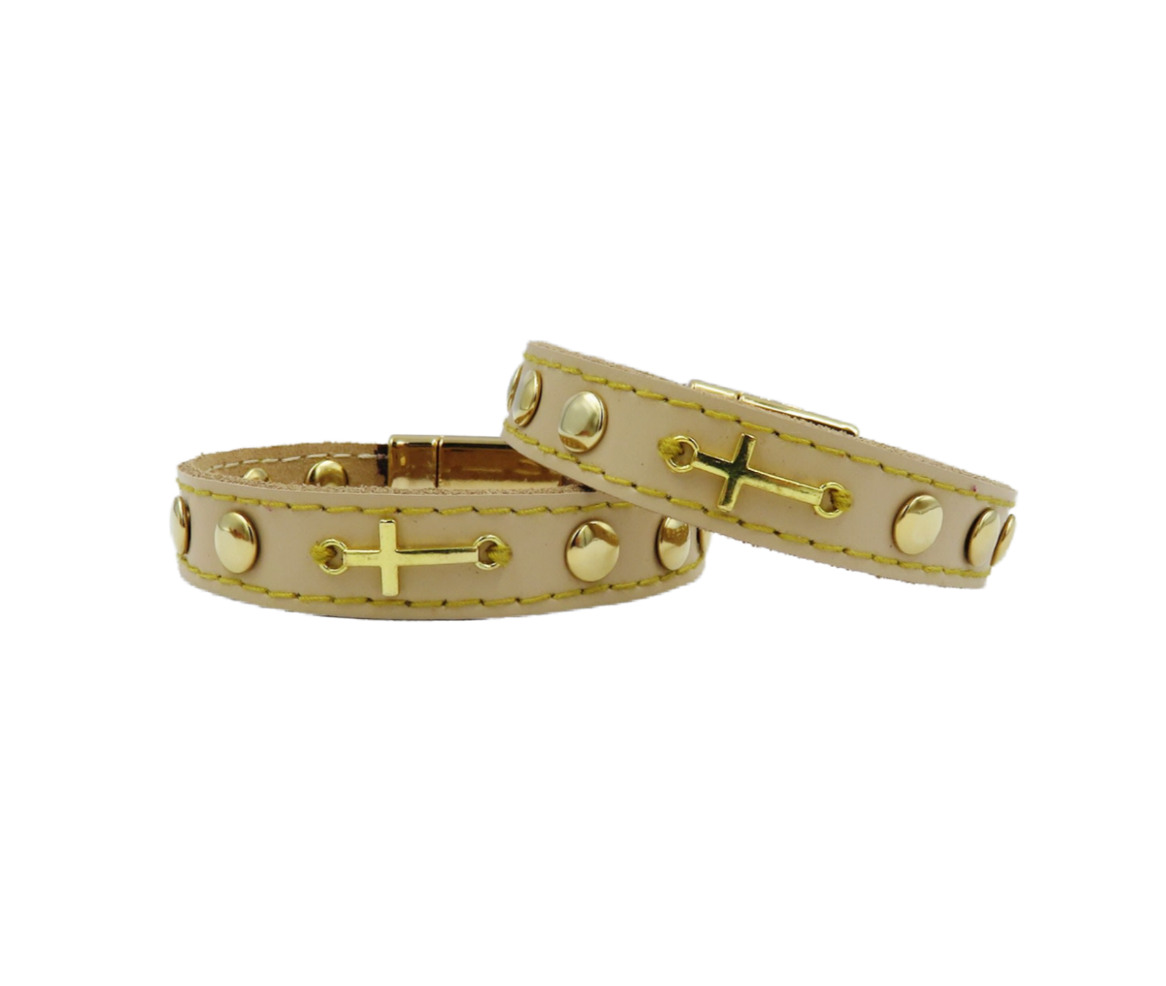 Beżowa, bransoletka skórzana, zapinana na magnes.
