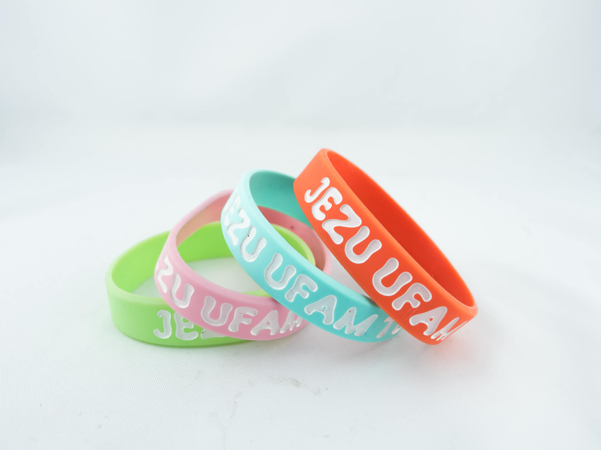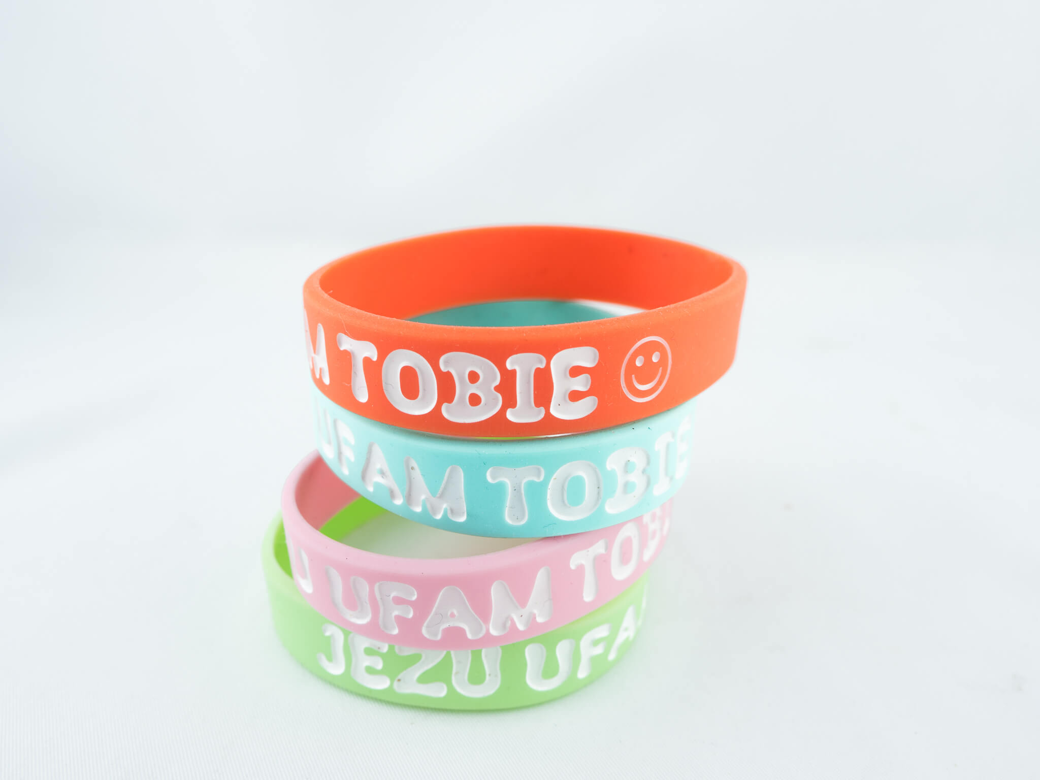 Bransoletka dziecięca z białym napisem JEZU UFAM TOBIE.