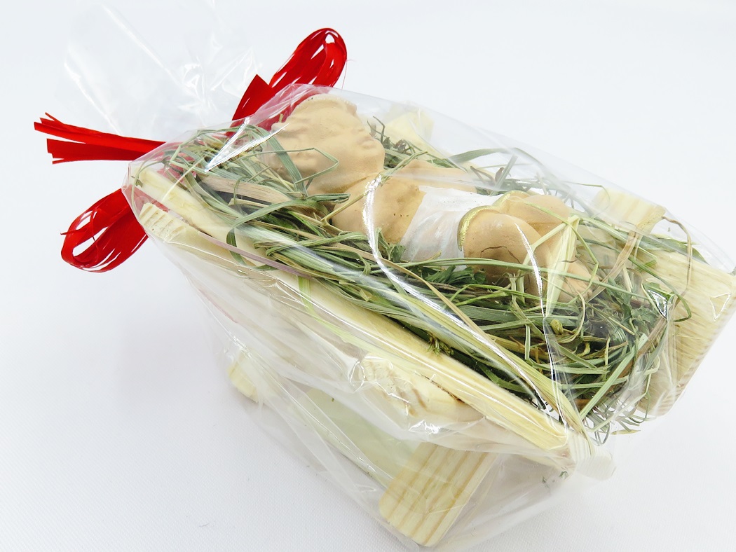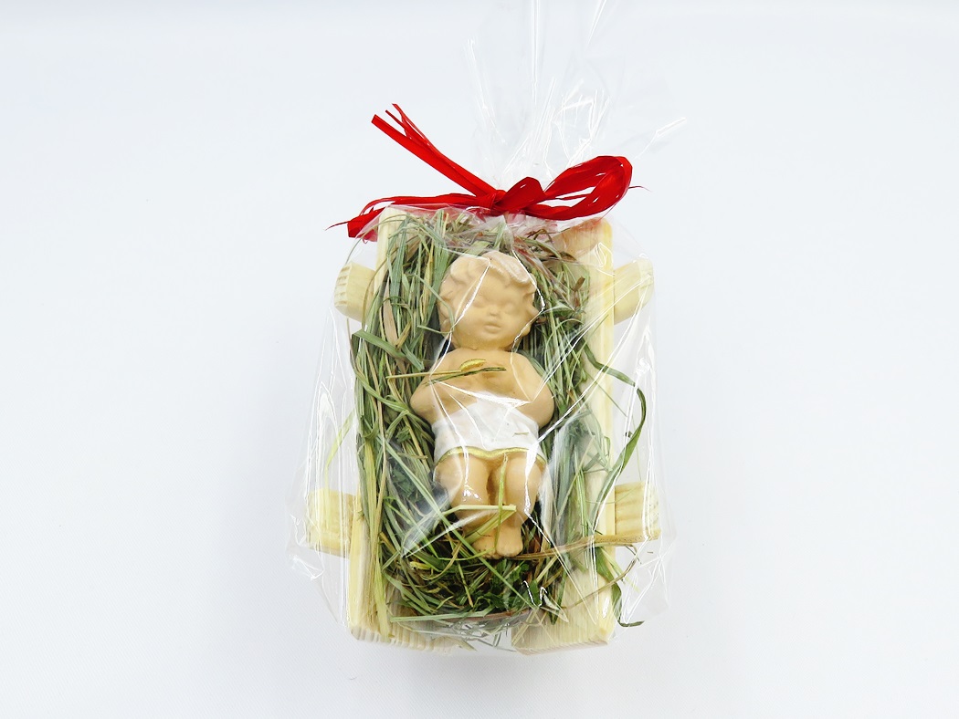 Dzieciątko Jezus na sianku w drewnianym żłóbku