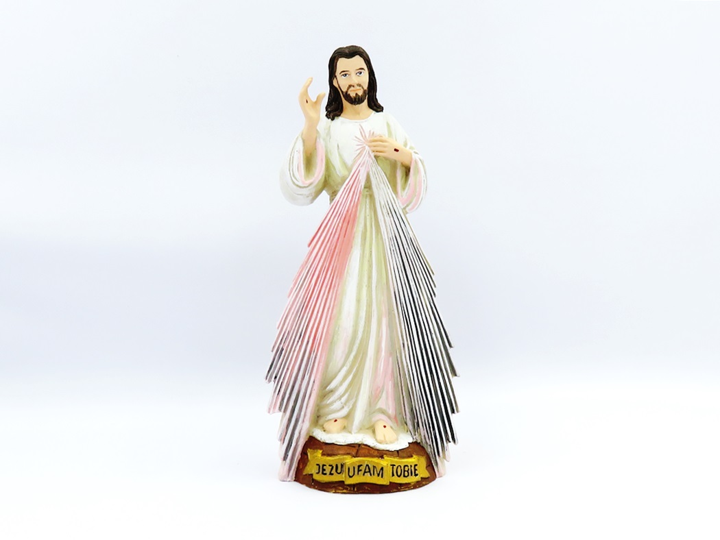 Figurka wyrzeźbiona na specjalne zamówienie Zgromadzenia Sióstr Matki Bożej Miłosierdzia. Odlew wykonany z żywicy poliestrowej z wypełniaczem mineralnym. Malowana ręcznie, farbami akrylowymi, zabezpieczona powłoką z filtrem UV. Odporna na zmiany temperatury. Wyjątkowa pamiątka z Sanktuarium Bożego Miłosierdzia. Możliwość zakupu wyłącznie w naszym sklepie.