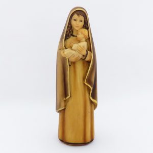 Figurka Matki Bożej wykonana z masy żywicznej utwardzanej – tworzywo odporne na warunki atmosferyczne i czynniki zewnętrzne.