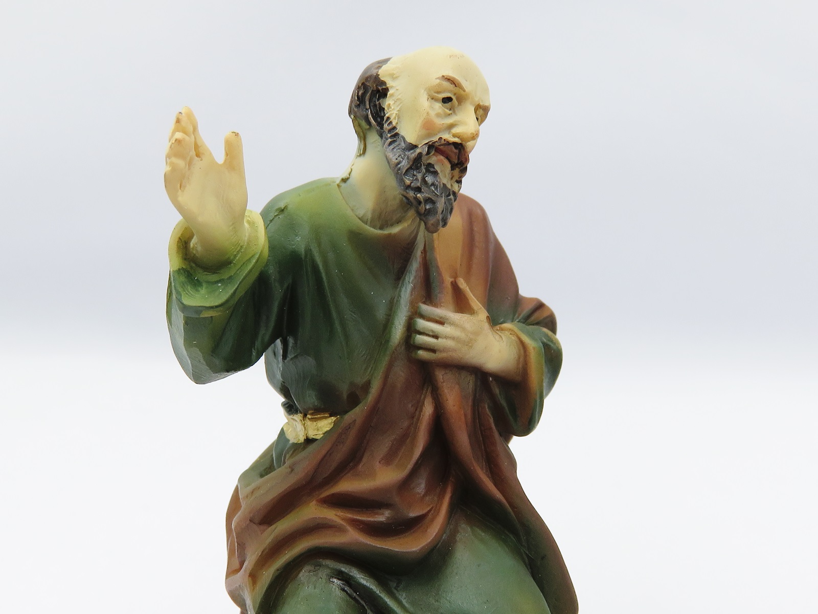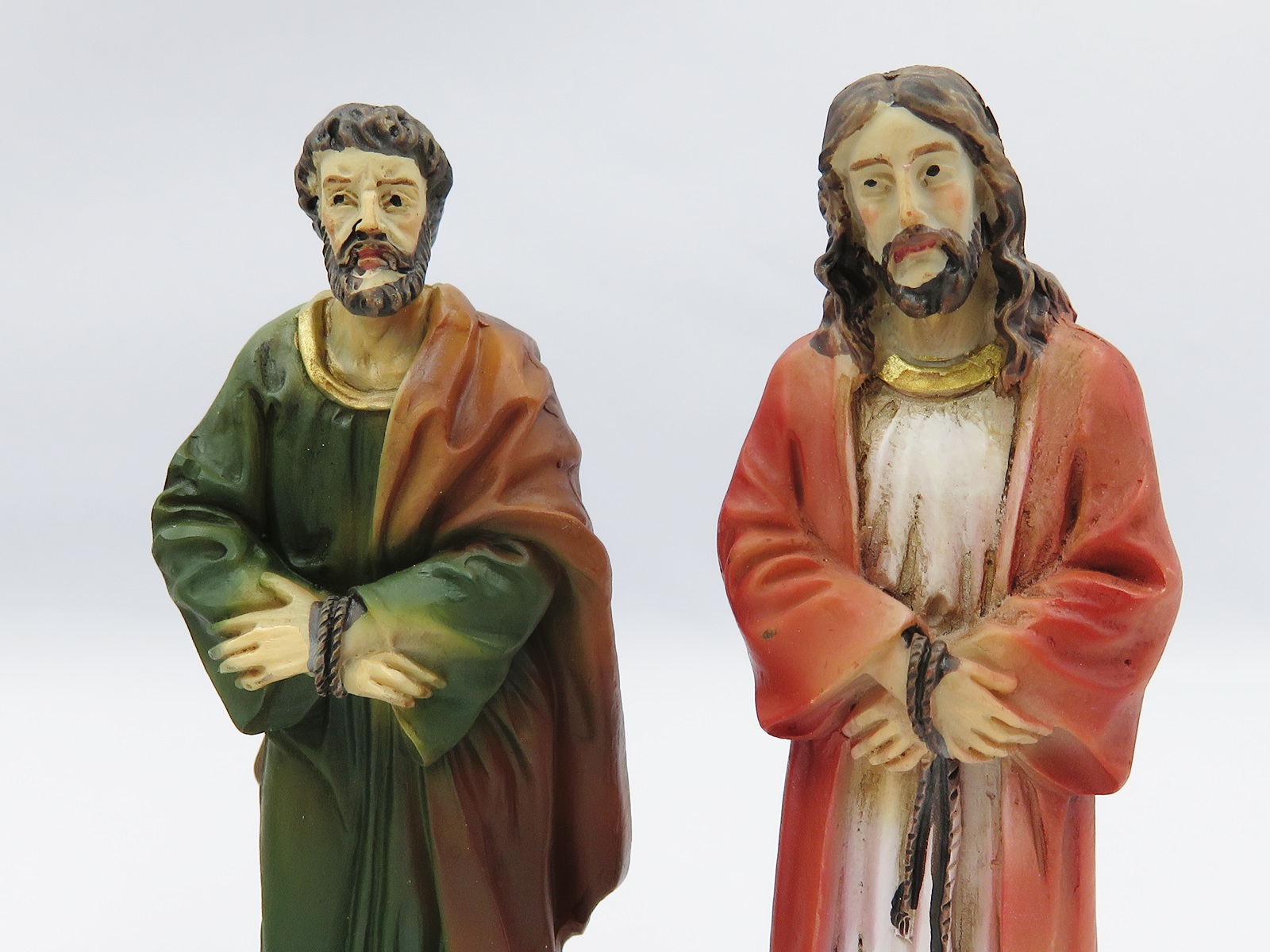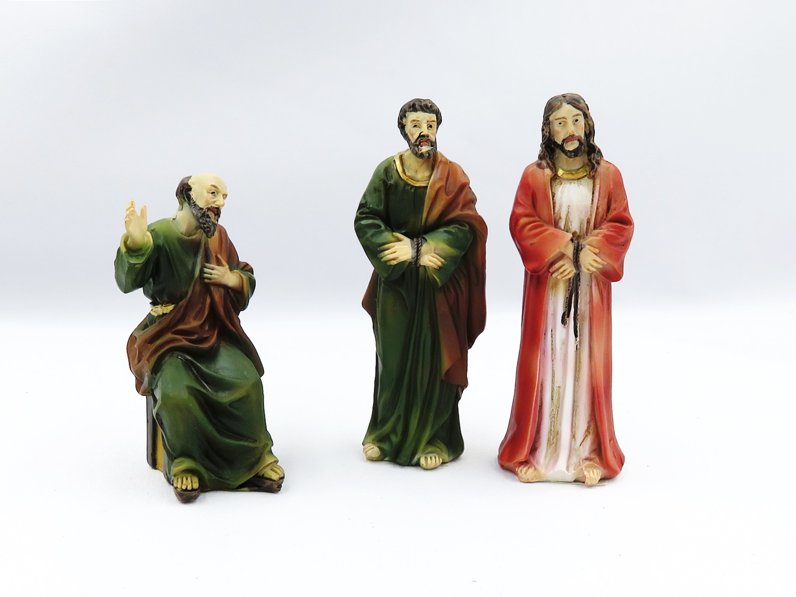 Figurka przedstawiająca Skazanie Pana Jezusa, ręcznie szlifowana i malowana wysokiej jakości farbami, wykonana z masy żywicznej utwardzanej – tworzywo odporne na warunki atmosferyczne i czynniki zewnętrzne.