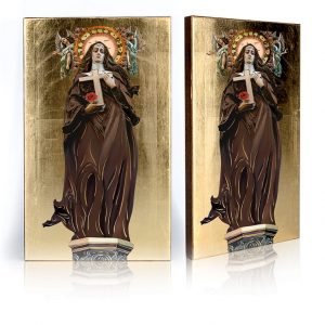 Ikona świętego Charbela, wykonana unikalną technologią nanoszenia obrazu na drewno, która pozwala na wierne odtworzenie oryginału. Ikona została wykonana na desce olchowej, litej, klejonej dzięki czemu jest odporna na pęknięcia i wygięcie. Złocenia na ikonie wykonane ręcznie, złotem płatkowym.