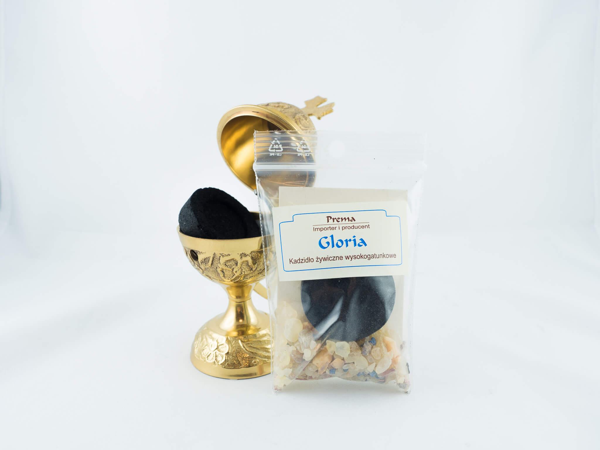 Porcja jednorazowa wysokogatunkowego kadzidła żywicznego GLORIA. Zapach podczas kadzenia z początkowo słodkiego, przechodzi w egzotyczny las z dodatkiem drzewa sandałowego.