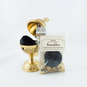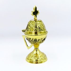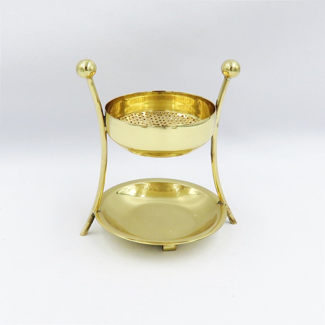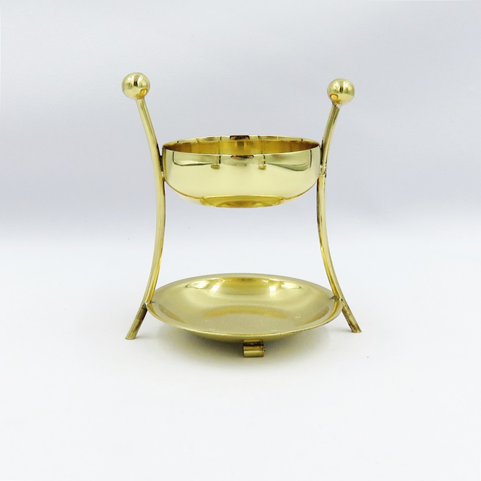 Kadzielniczka mosiężna, polerowana, do użytku domowego.