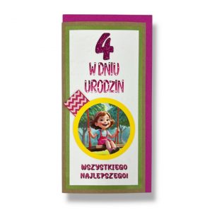 Ręcznie wykonana kartka z życzeniami na czwarte urodziny dla chłopca.