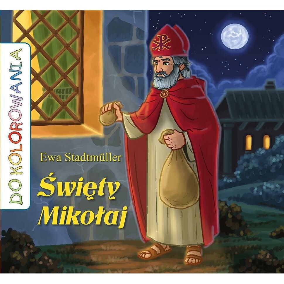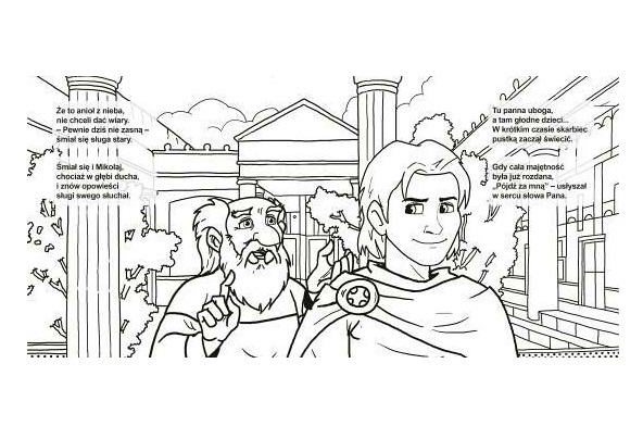 Kolorowanka opowiadająca historię życia św. Mikołaja, biskupa Miry.