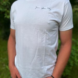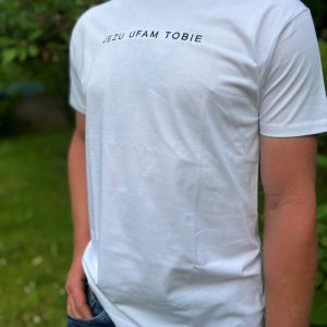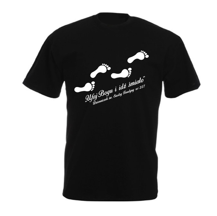 Koszulka bawełniana z nadrukiem „Ufaj Bogu i idź śmiało.” – kolor czarny.
