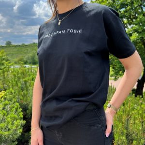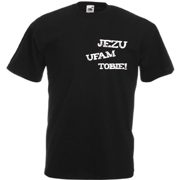 Koszulka bawełniana z nadrukiem „Jezu ufam Tobie!” – kolor czarny .