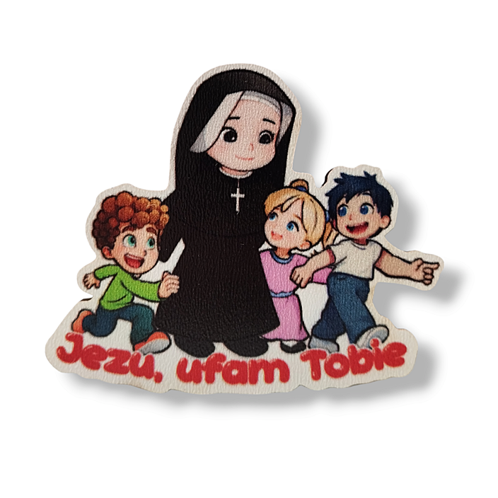 Magnes przedstawiający świętą Siostrę Faustynę z dziećmi.