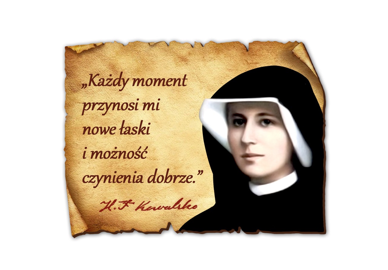 Magnes z wizerunkiem św. Siostry Faustyny wraz z cytatem z Dzienniczka. Na magnesie umieszczono dodatkowo zachowany oryginalny podpis świętej.