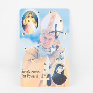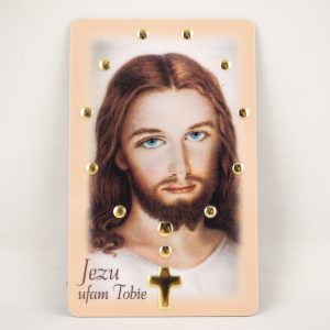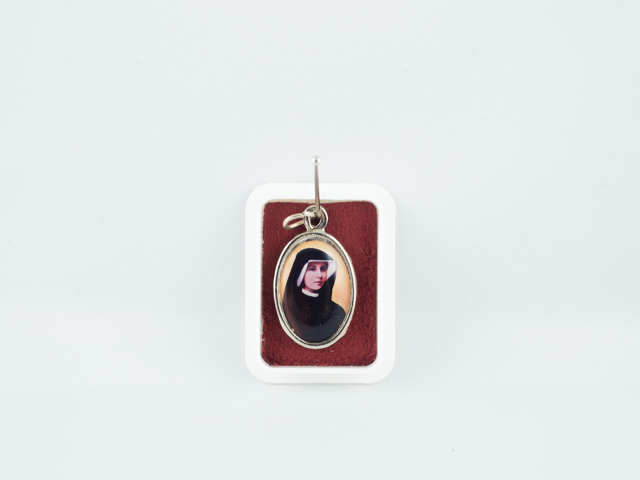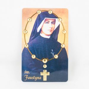 Medalik metalowy,umieszczony w pięknym pudełeczku. Naklejka wykonana z masy żywicznej z wizerunkiem św. Siostry Faustyny, a na odwrocie Jezusa Miłosiernego.