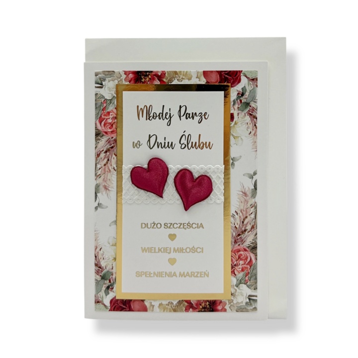 Ręcznie wykonana kartka z życzeniami z okazji ślubu.