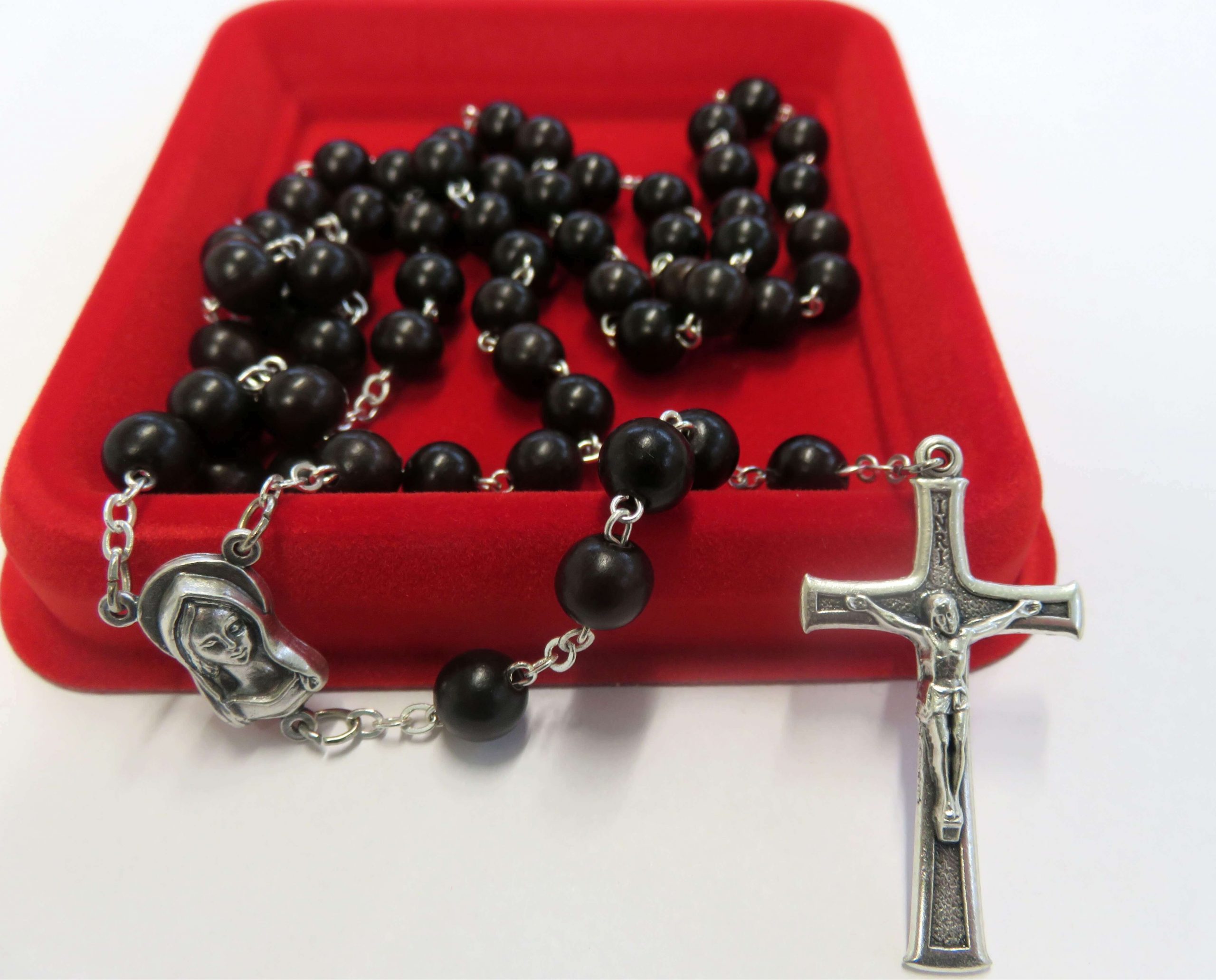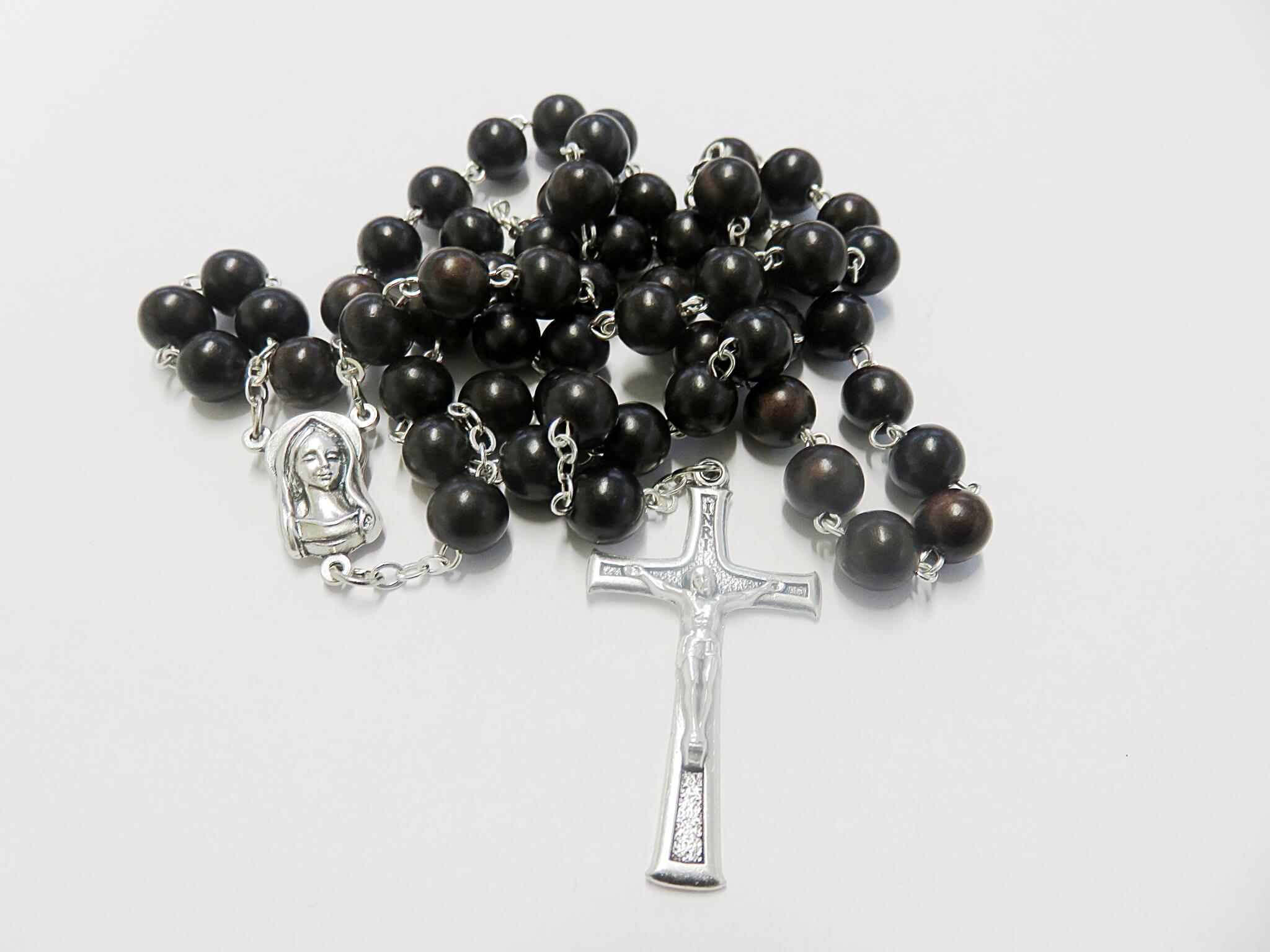 Różaniec, którego paciorki zostały wykonane z jednego z najszlachetniejszych drzew. Heban posiada charakterystyczną ciemną barwę, jest bardzo wytrzymały, a przy tym lekki.