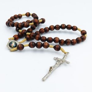 Różaniec z przepięknych koralików stanowi praktyczny upominek religijny dla bliskiej osoby.