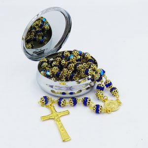 Różaniec z przepięknych koralików stanowi praktyczny upominek religijny dla bliskiej osoby.