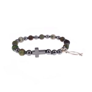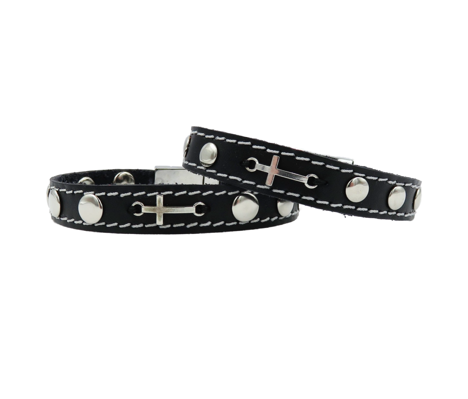 Bransoletka skórzana  różaniec, zapinana na magnes.