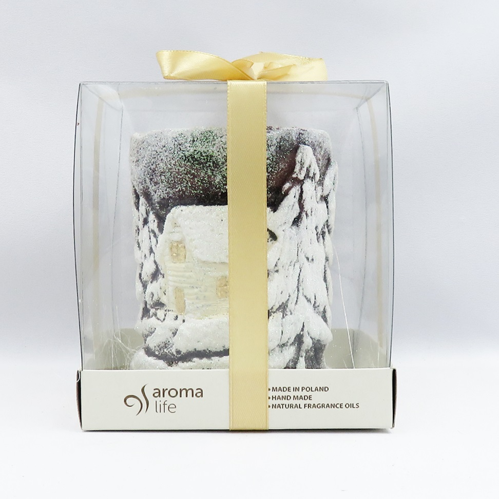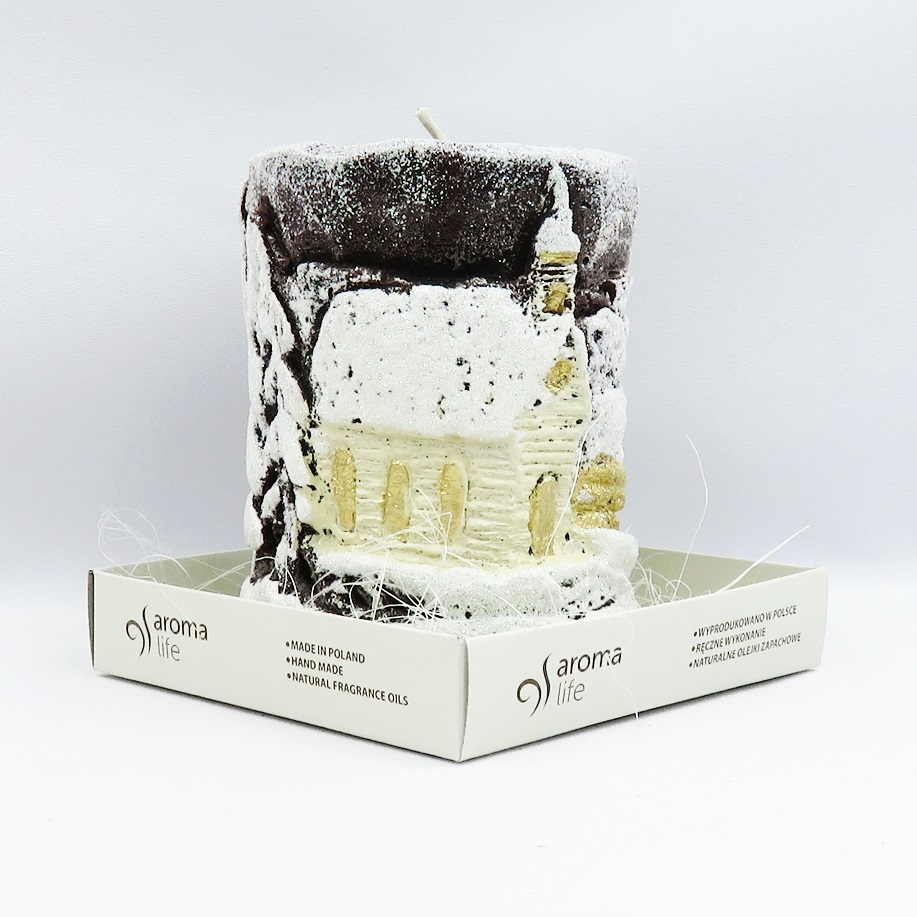 Wyjątkowa świeca Bożonarodzeniowa z zimowym krajobrazem.