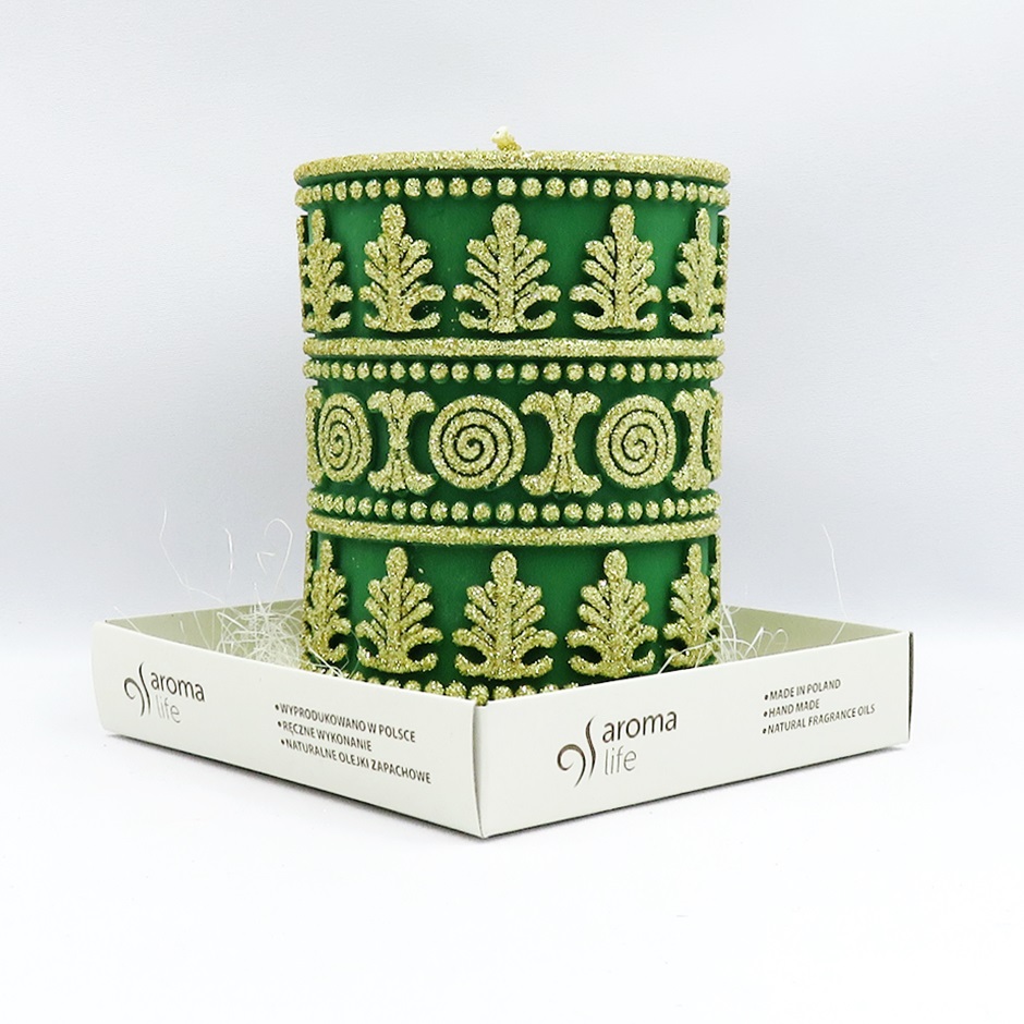 Wyjątkowa świeca Bożonarodzeniowa z unikatowymi ornamentami.