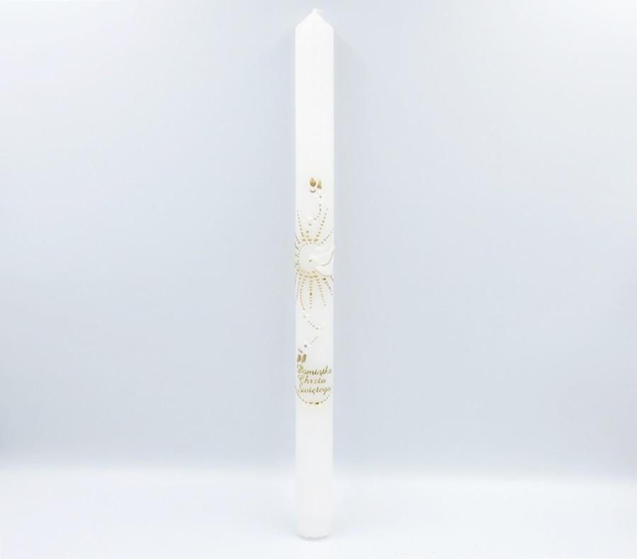 Świeca parafinowa na Chrzest Święty z wizerunkiem Ducha Świętego.