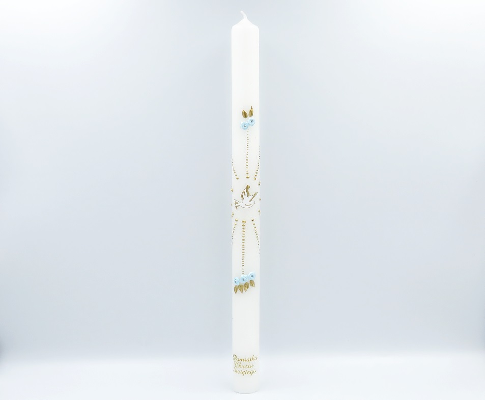 Świeca parafinowa na Chrzest Święty z wizerunkiem Ducha Świętego.