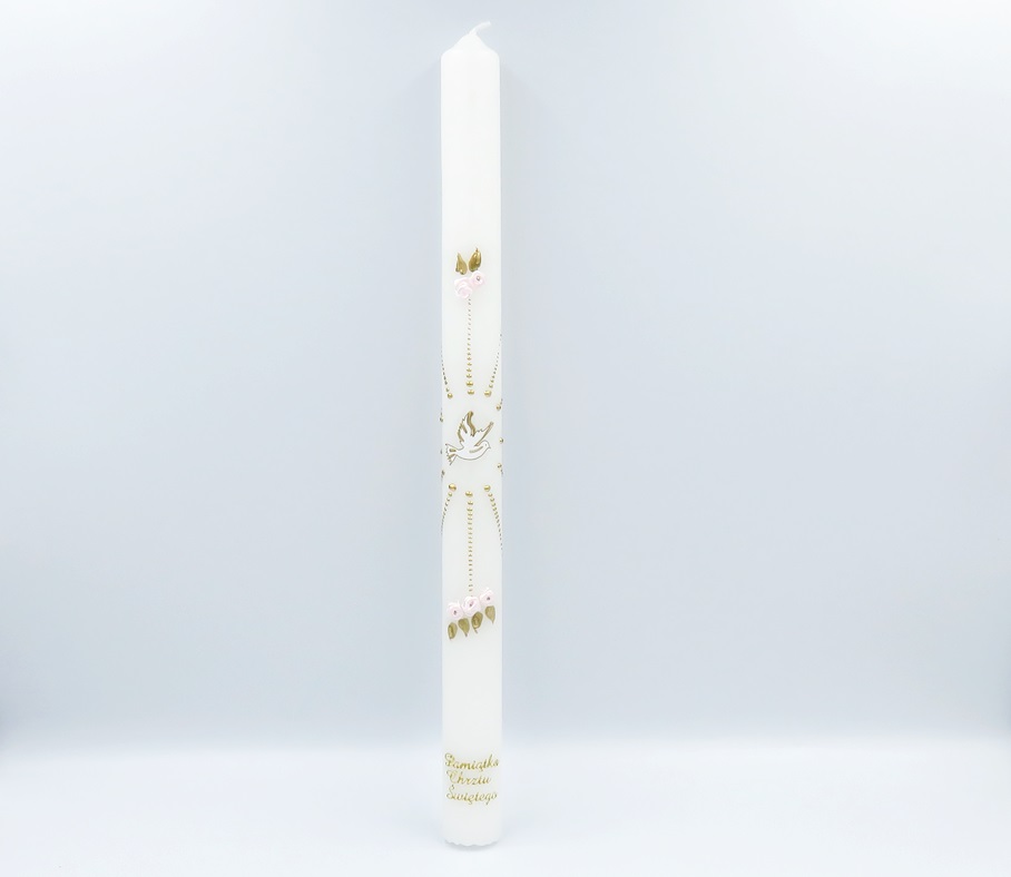 Świeca parafinowa na Chrzest Święty z wizerunkiem Ducha Świętego.
