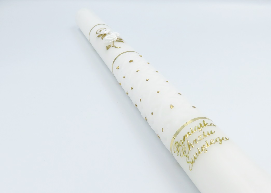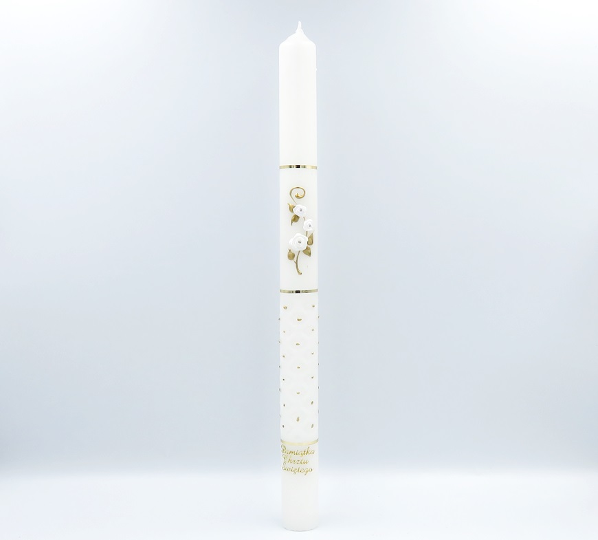 Świeca parafinowa na Chrzest Święty z motywem kwiatowym.