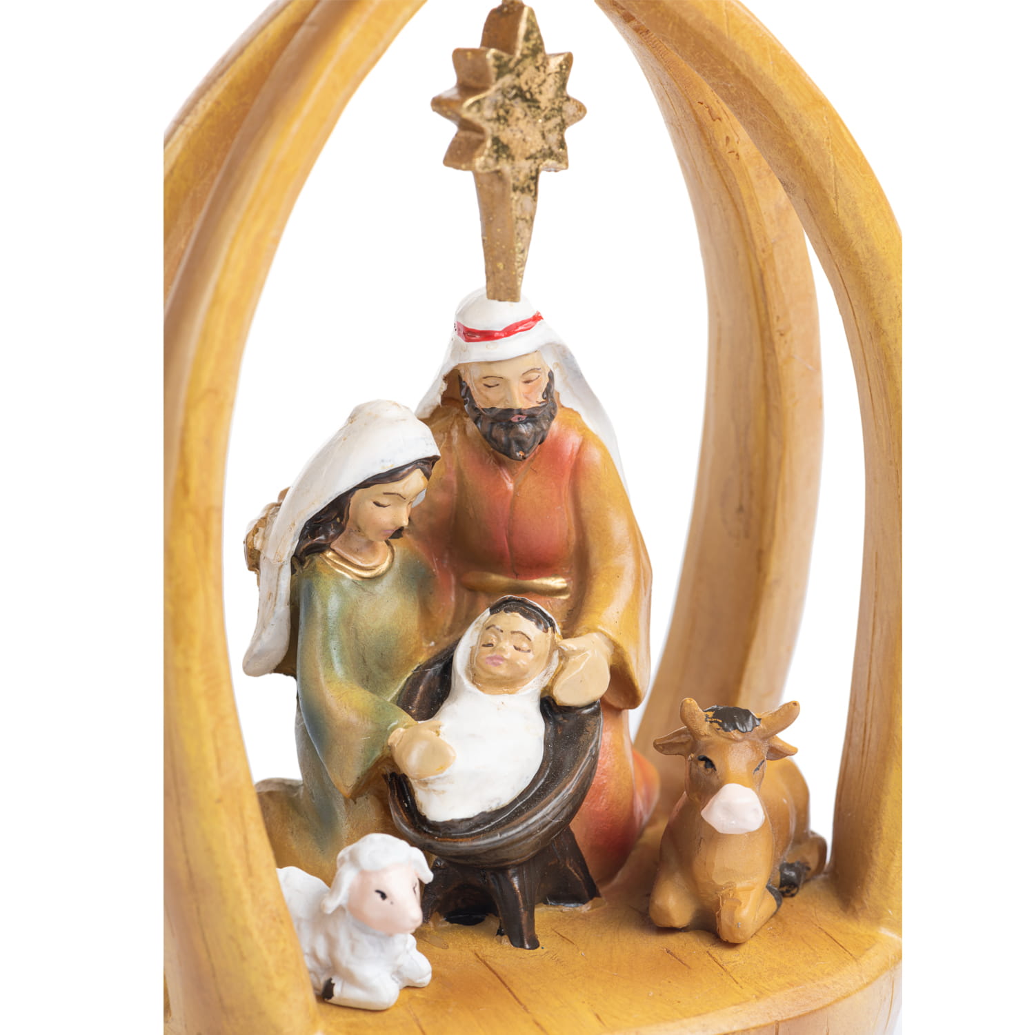 Szopka Bożonarodzeniowa przedstawiająca Świętą Rodzinę. Nowo narodzone Dzieciątko Jezus otoczone jest opieką kochających rodziców.
