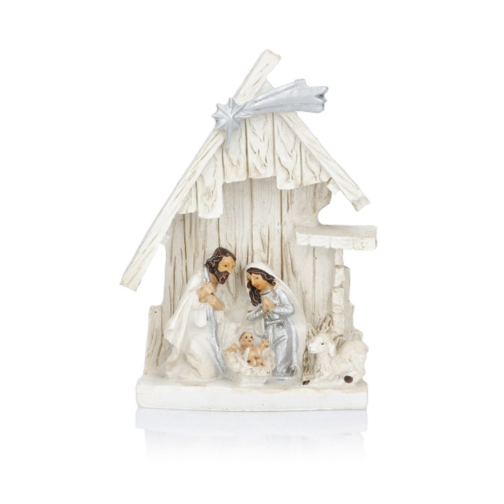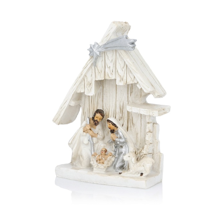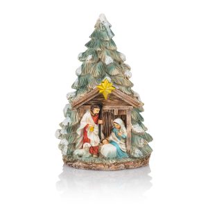Szopka Bożonarodzeniowa przedstawiająca Świętą Rodzinę. Nowo narodzone Dzieciątko Jezus otoczone jest opieką kochających rodziców.