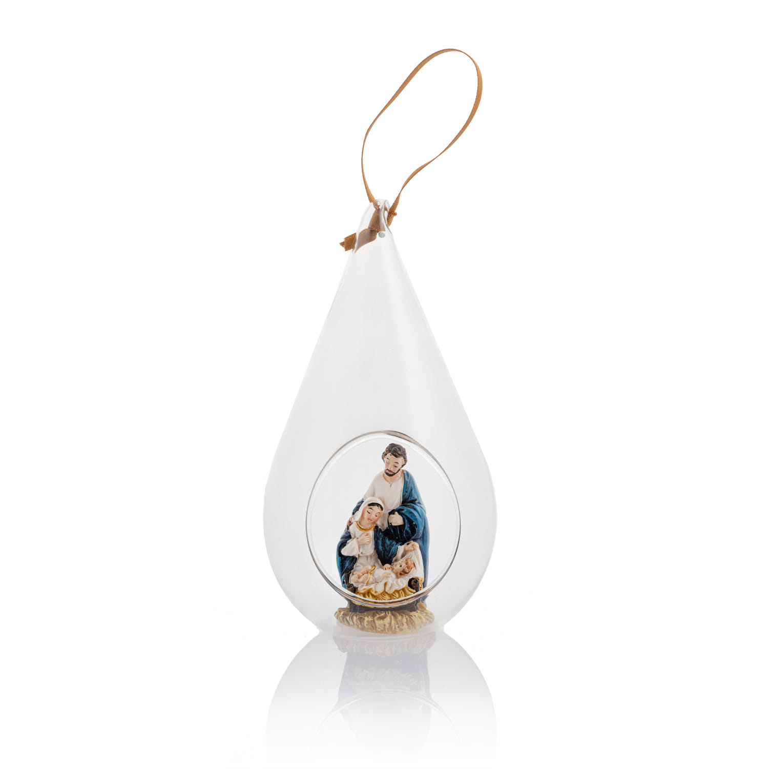 Szopka Bożonarodzeniowa przedstawiająca Świętą Rodzinę  umiejscowiona w szklanej bombce.