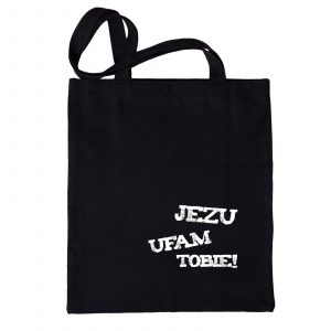 Bawełniana torba na zakupy z nadrukiem w uniwersalnym czarnym kolorze. Dostępna wyłącznie w naszym sklepie. Nadruk wykonany metodą cyfrową.