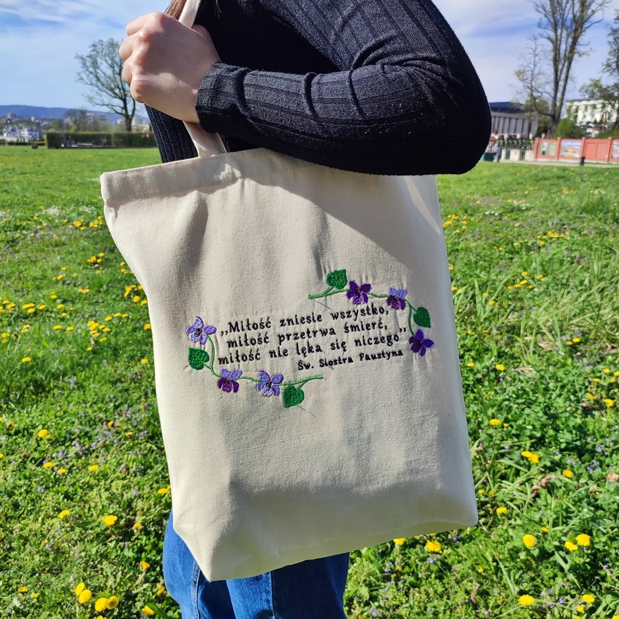 Bawełniana torba na zakupy z haftem. Dostępna wyłącznie w naszym sklepie.