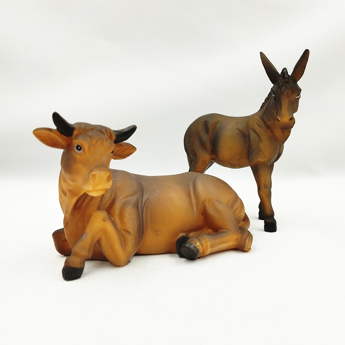 Wół i osiołek – figury proporcjonalnie pasują idealnie do figur o wysokości 13 cm (stojące, dorosłe postacie).