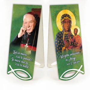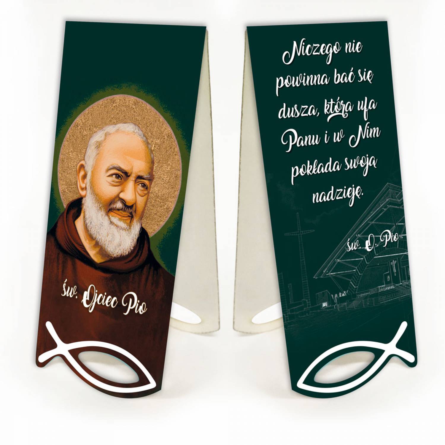 Papierowa, funkcjonalna zakładka magnetyczna do książki z wizerunkiem św. Ojca Pio.